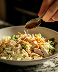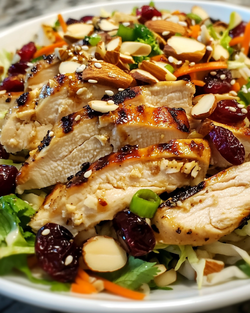 Inspired by the bright flavors of Asian-style salads often found in family gatherings and potlucks, this version adds a sweet twist with dried cranberries. The combination of tender chicken, crunchy vegetables, and a tangy sesame dressing creates a flavor packed bowl that feels both refreshing and satisfying. Once you try it, this salad will quickly become a go-to favorite.