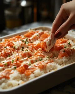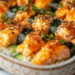 Whether served for family dinner, casual entertaining, or a fun meal prep option, this sushi bake is a reliable crowd-pleaser. The combination of seasoned rice, creamy salmon, and crunchy toppings creates layers of flavor that satisfy every bite. Once you try it, it’s likely to become your go-to weeknight dinner recipe—a flavorful, comforting, and effortless way to bring a taste of sushi to your table anytime.