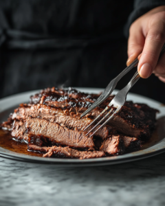 • Let brisket rest 15–20 minutes before shredding.
