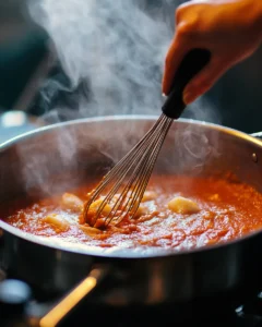 Next, add the garlic and cook for about 30 seconds, stirring constantly. Garlic releases its aroma very quickly, so this short cooking time ensures it becomes fragrant without burning. Once you smell the rich, warm scent of garlic, you’re ready for the next step: deepening the flavor with tomato paste.