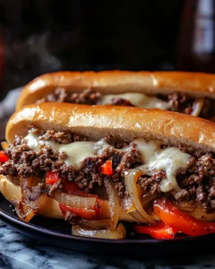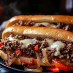 This simple yet flavorful skillet method ensures each sandwich is packed with tender, savory beef, sweet and slightly caramelized vegetables, and rich, melted cheese—making it a perfect weeknight dinner or comfort food favorite for any occasion.