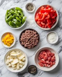 Ingredients for Savory Ground Beef Philly Cheesesteaks