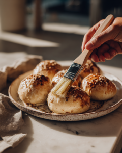 Brush each bomb with egg wash (1 egg + 1 tablespoon / 15 ml water).