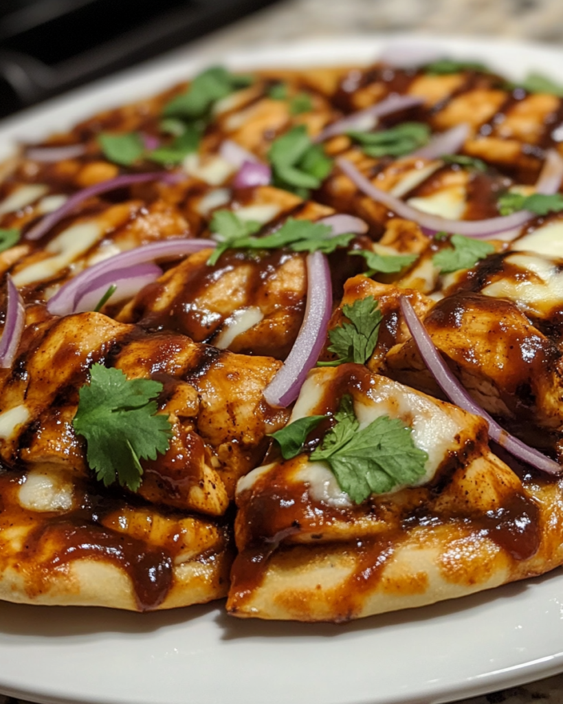 The balance of smoky barbecue sauce, savory chicken, and sharp cheddar ensures bold flavor in every bite. Fresh cilantro and red onion add brightness and contrast, elevating the flatbread from simple to sensational.