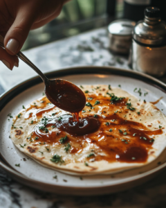 Spread a thin layer of extra barbecue sauce (about 1 tablespoon / 15 ml per flatbread) directly on the base.