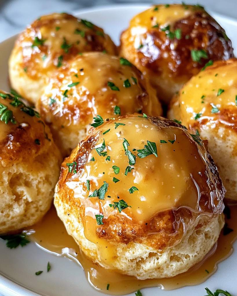 Yes, you can assemble the cheese bombs up to 24 hours in advance. Place them seam-side down on a baking sheet, cover tightly, and refrigerate. When ready to bake, brush with the butter mixture and bake as directed. You may need to add 1–2 extra minutes to the baking time if baking directly from the refrigerator. This makes them ideal for party prep and stress-free entertaining.